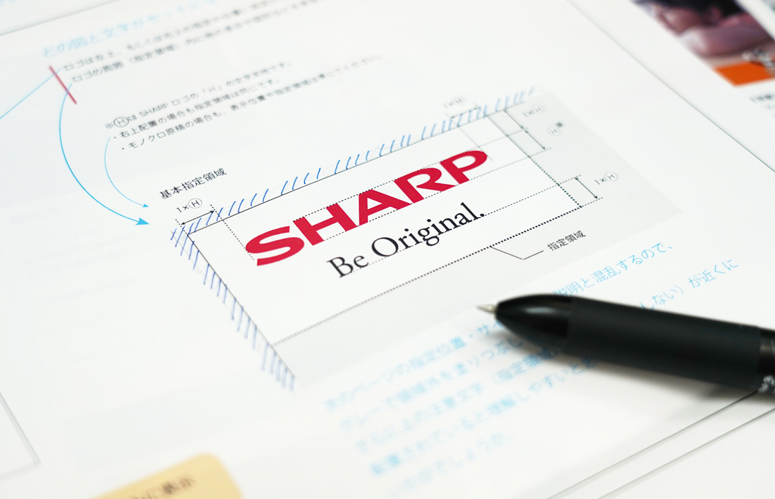 カタログ、CM、WEB サイト、あらゆる媒体に使われる「組みロゴ」をデザインしました。「SHARP」のロゴと「Be Original.」を組み合わせて…